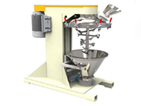 產(chǎn)品通過錐形混合腔頂部投入,投料范圍在30%-100%之間,設(shè)備中間有一個頂部驅(qū)動的高速轉(zhuǎn)軸,因此便去除了在產(chǎn)品區(qū)域的密封設(shè)計以及軸承。在軸上有緊貼內(nèi)壁的槳式混合原件。通過高速旋轉(zhuǎn)的攪拌槳和錐形內(nèi)倉的共同作用將產(chǎn)品由底部帶至混合腔的上部。當(dāng)產(chǎn)品達(dá)到頂部的時候又重新回落到混合倉中心,如此的產(chǎn)品的方式形成了一種快速的宏觀混合。